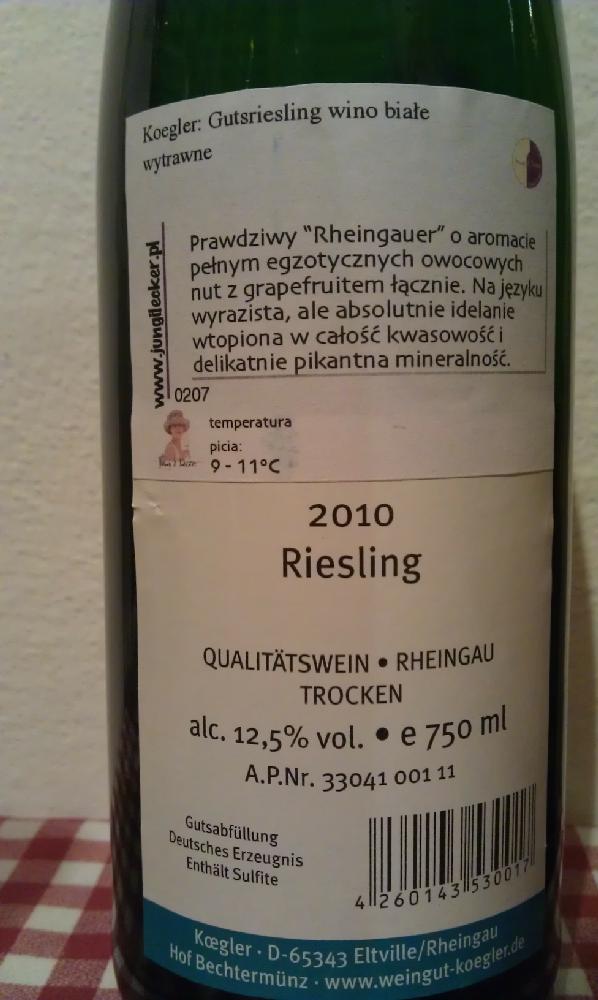Riesling Gutswein Rheingau Weingut Koegler 2010