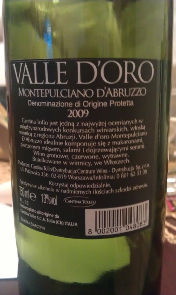Montepulciano d'Abruzzo Valle d'oro Cantina Tollo 2009