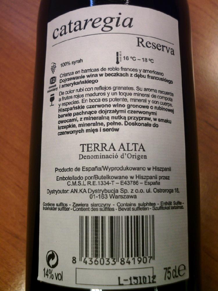 Syrah Reserva Cataregia 2008